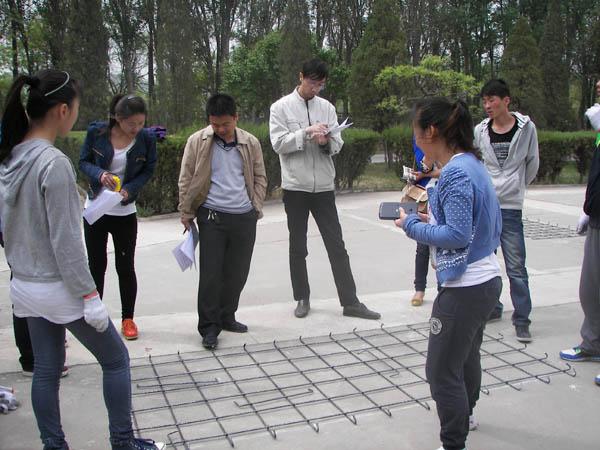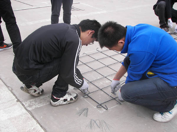 36名同学分9组分别根据施工图进行了板钢筋的下料和绑扎。经过评委老师对理论知识的考察和对作品的严格打分,大赛按参赛比例评出了一、二、三等奖。