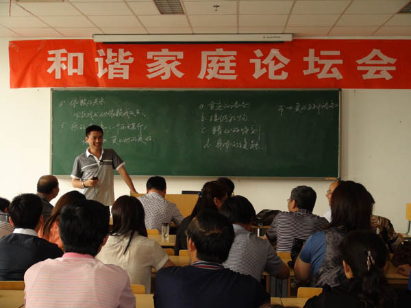 在L楼203召开了和谐家庭论坛会,由咸宝林副教授为全院教师及部分学生代表作了在家庭中如何使夫妻关系和谐的精彩报告。