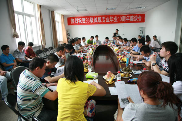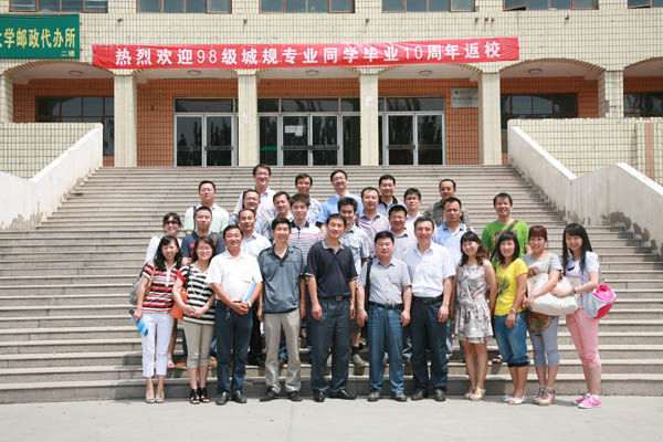 2002届城市规划专业毕业生返校举行毕业十周年庆祝活动。学校校友办主任王智勇,学院党总支书记马正亮,副院长崔自治、毛明杰等代表校友会和学院热忱接待了返校校友。校友们先参观了校园,随后召开了在校师生与校友的座谈会。