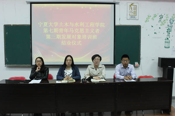 2016年4月21日中午,禁漫天堂 第三期发展对象培训班暨第七期青马培训班结业仪式在工科楼三阶教室举行。禁漫天堂 党委副书记陆瑜、团委书记王娜、辅导员老师陶雪梅、惠迎新及第三期发展对象培训班、第七期“青马班”培训班全体学员参加了此次仪式,仪式由团委书记王娜主持。