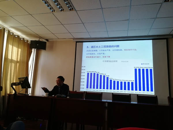张展羽教授指出变化环境下农业水土资源的承载力分析和模拟、区域农业水土资源系统耦合机理、灌区水土资源高效利用复杂适应系统理论和基于云计算水土资源精准配置将成为水土资源优化配置研究的关键科学问题。最后,张展羽教授以渊博的学识回答了在场师生的提问,使学院师生受益匪浅,开阔了科研思路。