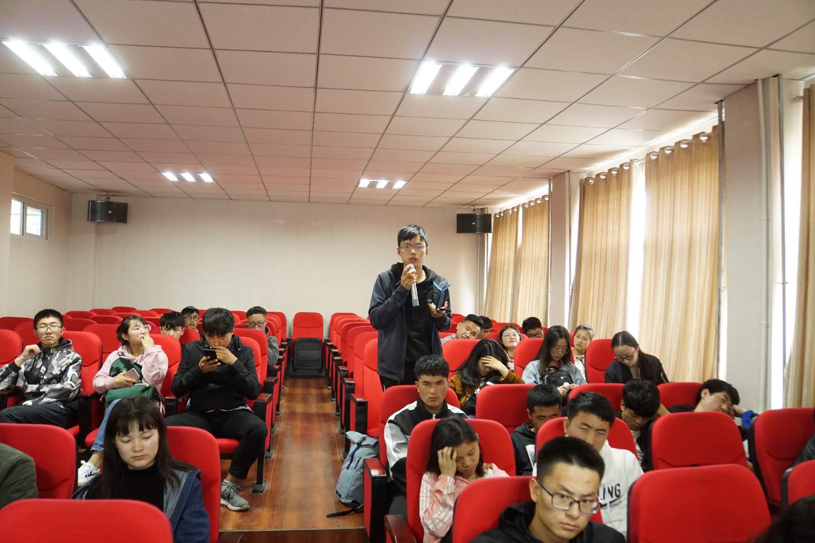 座谈会开始后,副院长刘海峰首先介绍到场的各位领导和老师,然后各班学生代表进行发言,对学院的各项工作以及目前学习生活中遇到的问题提出意见和建议,学院领导对同学们的问题给予耐心解答,并提出相应的解决方案。
