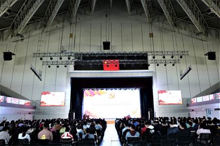 在大学生活动中心举行党史学习教育专题辅导报告会。学院党委邀请了学校党史学习教育宣讲组成员、马克思主义学院教授高石钢同志主讲。报告会由学院党委书记张晓天主持,学院全体师生党员、学生骨干参加。