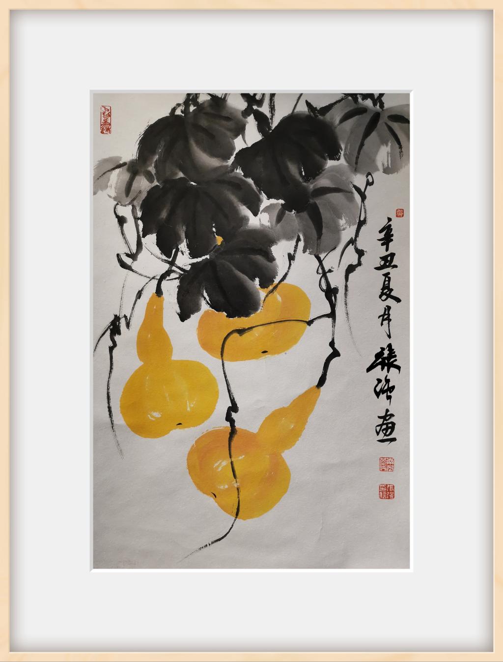 这幅名为《福临门》的作品,色调明快、栩栩如生、寓意丰满。金黄色的硕果展现了中华大地一派欣欣向荣的景色,象征着中国共产党在100年波澜壮阔的历史征程中取得的光辉成就,也预示着中华民族的光明前景和美好未来�