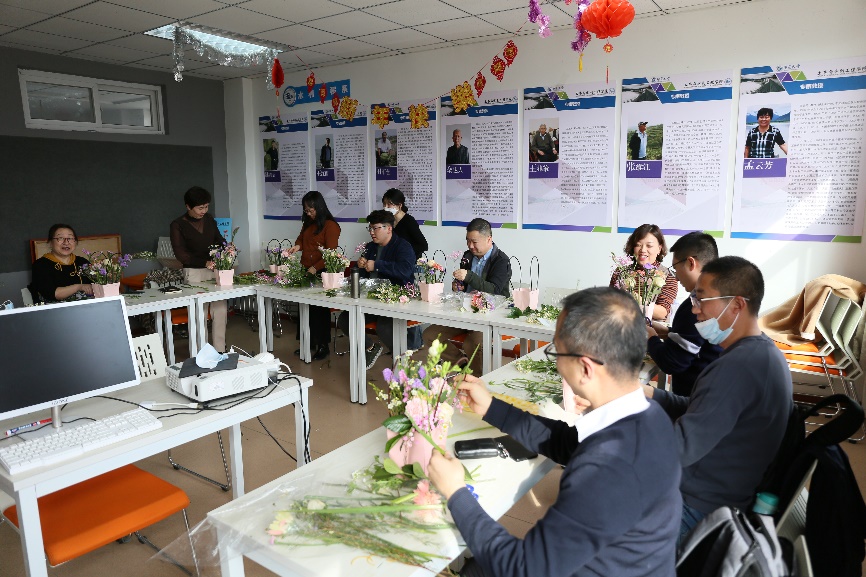 于3月9日下午开展了“凝心惠宜、共筑幸福”插花活动,此次活动由副院长朱磊主持,全院教职员工参加了此次活动。主题活动开始,学院邀请专业花艺师团队为大家开展花艺培训,插花活动在各系活动室进行。学院为教职员工们准备了丰富的花材,生机勃勃的向日葵、热情奔放的大丽菊、沁人心脾的玫瑰、含苞待放的月季、清新淡雅的小雏菊、星星点点的满天星在老师们的巧手下变得格调高雅、清新怡人。通过活动,学院领导全程与教职员工一起插花,达到了增进交流、丰富生活、陶冶情操、凝心聚力、团结奋进的目的,也为学院推进“十四五”规划、实现高质量发展统一了思想,凝聚人心。