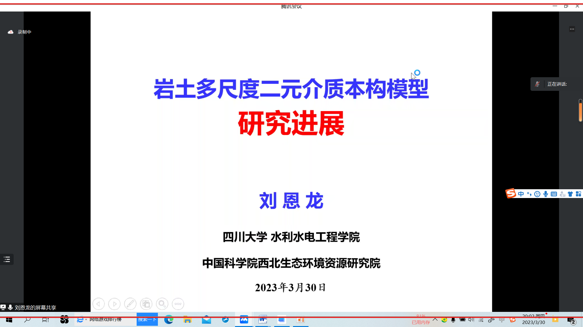师生做题目为“岩土多尺度二元介质本构模型研究进展”的线上学术报告。报告由刘海峰副院长主持,禁漫天堂