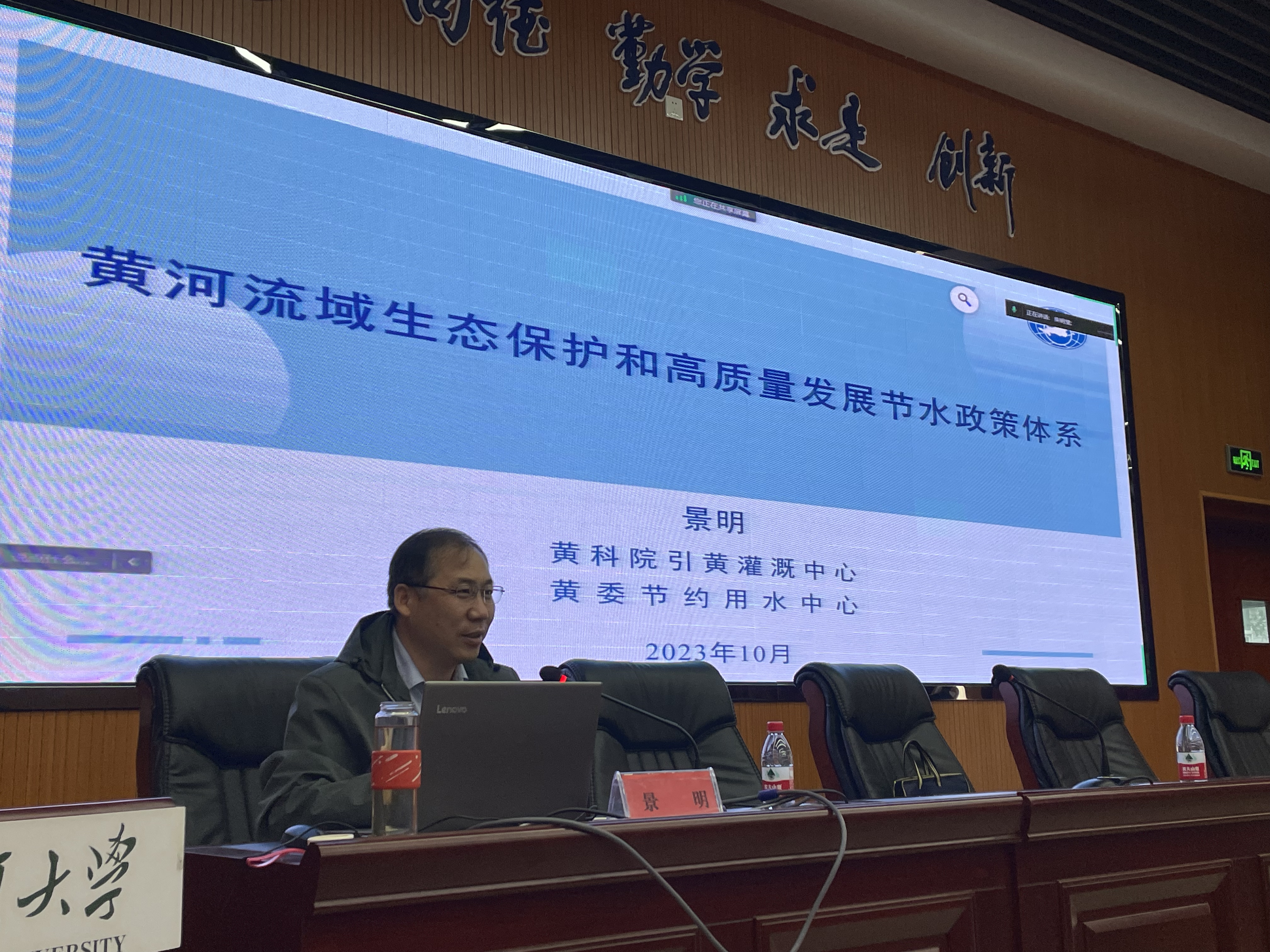 召开了第十五届研究生学术论坛并特邀黄河水利科学研究院引黄灌溉中心(黄委节水用水中心)总工程师景明教授级高工为学院师生做题为“黄河流域生态保护和高质量发展节水政策体系”的学术报告,通过线上线下同步的方式进行,报告会由学院党总支副书记徐利岗主持,线上线下同步进行,学院师生150余人在现场聆听了讲座,另有180余人线上参会。