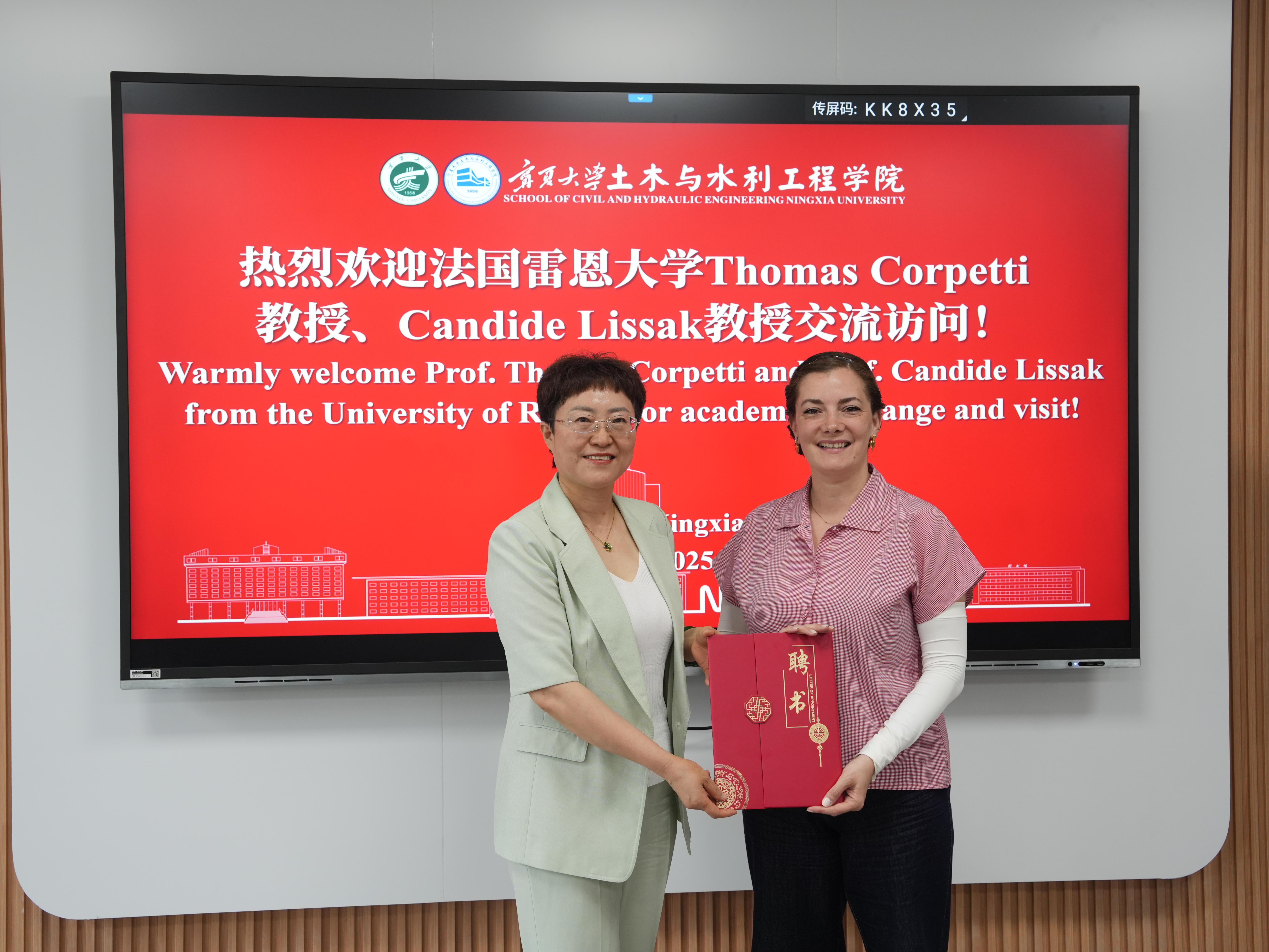 经过交流,宁夏大学土木与水利工程学院正式聘请Thomas Corpetti教授和Candide Lissak教授为客座教授,并举行了聘书颁发仪式。双方在友好交流的基础上,就研究生联合培养达成初步合作意向,为下一步推动双方高校间的科研合作与人才培养奠定基础�