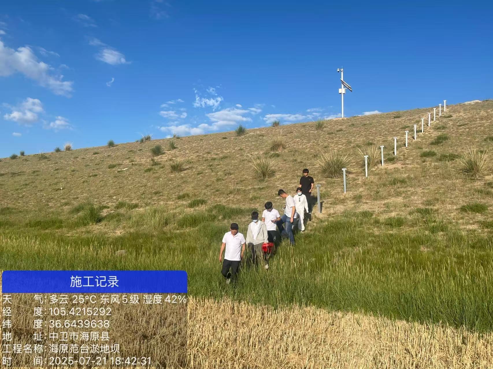 7月22日下午,社会实践团队来到彭阳县店房台淤地坝。在带队老师的指导下,团队成员在淤地坝不同区域及邻近农田中,细致测量并记录了土壤的温度、湿度以及电导率等要素。团队成员详细考察了降雨对店房台淤地坝的影响,分析其与范台淤地坝之间的差异,对不同自然地理条件下的淤地坝特征有了初步的认识。