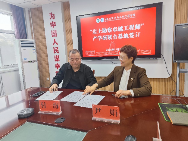 在与会人员的共同见证下,学院党总支书记尹娟教授与宁夏海辉岩土工程有限公司总经理付海代表双方签署了“岩土勘察卓越工程师”产学研联合基地框架协议。协议的签订,标志着校企合作进入了实质性的新阶段,为未来在人才培养、技术研发、成果转化等方面的深度合作奠定了坚实基础�