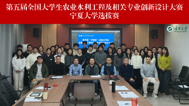 2025年12月24日,由宁夏大学团委主办,土木与水利工程学院承办,第五届全国大学生农业水利工程及相关专业创新创业竞赛宁夏大学选拔赛,在文萃校区知行楼816会议室如期举行。本赛事以“智慧水利支撑农业高质量发展”为主题,致力于培养学生的水利科技创新能力,推进农业水利工程技术高质量发展、智慧水利与智慧农业协同发展的进程。此次校级选拔赛前期经过报名资格预审、形式初审、网络评审等筛选程序,从33支报名队伍中确定10支队伍进入选拔赛现场答辩环节。