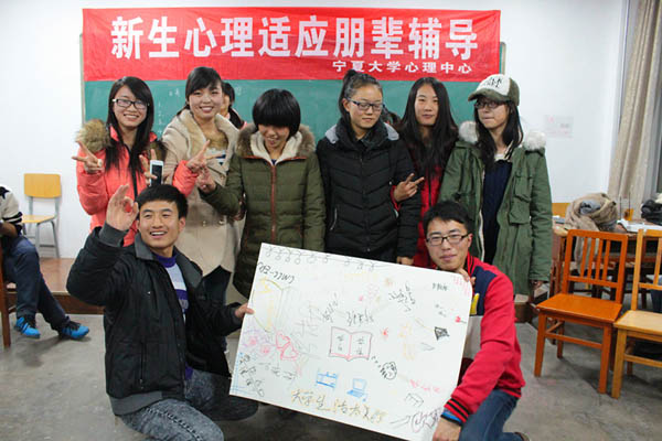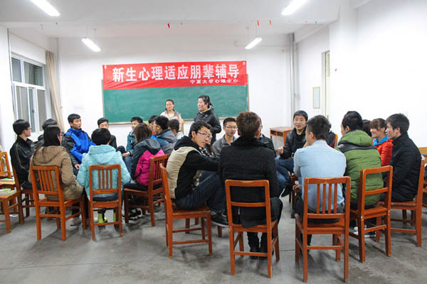 心理辅导中心的高年级同学为学院2014级新生进行心理适应朋辈辅导。