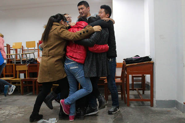 本次活动以各班为单位,以小游戏的形式展开。首先,由负责人向同学们介绍游戏规则,每班分四组同时进行。第一个游戏“刮大风”考验的是大家的即时反应能力;第二个游戏“微笑握手”,通过简单的表情及动作让大家消除戒心,坦诚相待;第三个游戏“同舟共济”则是考验团队的配合及默契度。为了使全队成员都能站在一张小小的报纸上,队员们开动脑筋出谋划策,不断改进、创新,实力不相上下。第四个游戏是同学们分享团队游戏的感想,写下“四最”——最高兴、最担心、最满意、最希望的事,每位同学积极参与,吐露心声,气氛十分活跃。第五个游戏是每组合作画海报,同学们用文字、色彩、线条勾勒大学生活的美好图景。一首《朋友》宣告了活动的圆满结束。
