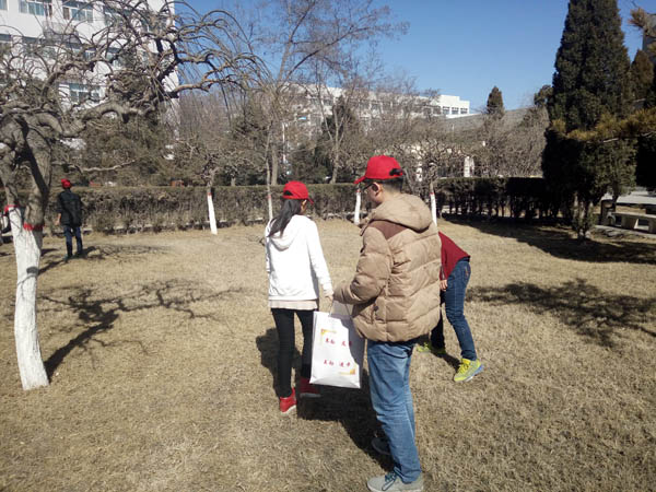 的志愿者们在社会实践部的带领下来到了工科楼前面的草坪区域进行草坪垃圾清理志愿活动。