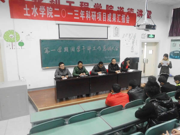 在工科三阶教室成功举行了2013-2014年第一学期团学干部工作总结大会。学院党委副书记张强、学生办公室