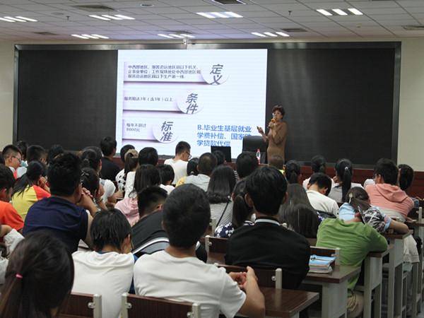 潘瑞老师首先介绍了我国高校资助制度发展历程,并系统讲解了我国以“奖、贷、助、补、减、免”为主的现有资助体系。在解读我国高校资助政策时,潘瑞老师为同学们详细讲解了国家奖学金、助学金、学生贷款、勤工助学、学费减免、师范生免费教育和辅助措施这七个方面的问题。随后,潘老师向同学们介绍了家庭经济困难学生的认定流程和资助办法。最后,潘老师结合学院事例分析了各类特殊情况的处理思路,并激励同学们刻苦学习,凭借自身实力争取荣誉。