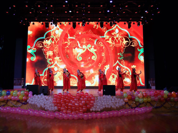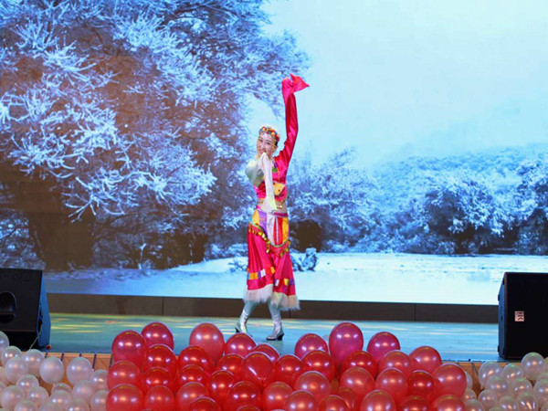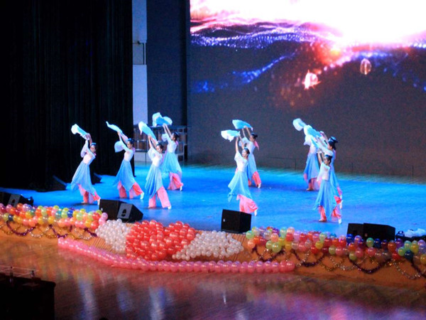 的2016级本科生和研究生致以热烈的欢迎和衷心的祝福。现场闪烁的灯光、激情的舞蹈点燃了晚会现场,同学们激情澎湃挥舞着手中的荧光棒。整个晚会表演形式丰富、内容新颖,精彩纷呈,高潮迭起,为观众奉上了一场酣畅淋漓视听盛宴。动听的歌曲、绚丽的舞蹈、有趣的小品以及幽默感十足的相声无不彰显着青春的风采,充斥着青春的活力。晚会最大的惊喜和亮点就是学办主任郭利作为神秘嘉宾现场助力高歌一曲和兼职辅导员老师胡思斯的藏族舞美轮美奂,精彩纷呈。郭主任带来的歌曲《天路》不仅异域风情浓郁,更让同学们见识到郭利老师不凡的歌喉。身着藏族服饰的胡思斯老师如同雪域高原的使者,带同学们神游到离天堂最近的西藏。优美的舞姿展现青春的美好,而动听的歌声则焕发青春的活力。歌曲串烧饱含激情,将晚会的气氛推向高潮。轻柔翩然的扇子舞,悠扬婉转的旋律,优雅灵巧的舞姿,展现了我们土水女生别样的风情。舞蹈《零下舞度》则以别开生面的形式奉献了一场新颖的视觉盛宴。新形式的微信墙现场互动方式的设立为此次晚会增色不少,高数量的上墙寄语和阅读量凸现了禁漫天堂