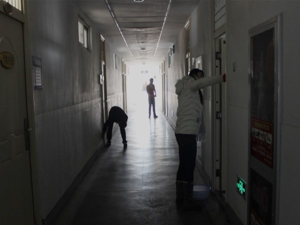 活动开始,负责人在一阶点名、分配任务,并详细说明了此次活动应该达到的标准和相关要求。活动在大家秩序井然的劳动中开始了,面对卫生间的脏乱不堪,他们没有选择逃避,而是用手中的工具把卫生打扫干净;面对墙壁上的点点污渍,他们没有唉声叹气,而是用手中的细砂纸卖力擦拭。渐渐的,卫生间变得干净整洁,两侧的墙壁变得洁白透亮。如果要问如何才能深入理解党的宗旨,如何才能贯彻实施不怕苦不怕累的精神?就是从这样一件件的小事中做起,就是从平常生活中的点点滴滴做起,相信发展党员们会将这样的精神传承下去并发扬光大。