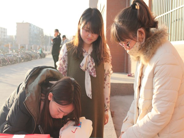 正如《爱的奉献》歌词中写到的,只要人人都献出一份爱,世界将变成美好的人间。因为同学们的爱心,天空变得不再是那么灰暗,寒风变得不再有那么刺骨,阳光变得温暖了许多。在募捐的过程中,有的学长学姐将棉衣和鞋子捐了出去,还有的捐出了漂亮封皮的笔记本、小台灯和随身小玩具……他们知道,或许自己眼中可有可无的物品在远方的另一个地方,将变成孩子们最惊喜的礼物。当进行实名登记时,他们含笑摇头,一位学长打趣道:“我们要贯彻落实做好事不留名的雷锋精神!”在心与心交织的那一刻,冬日的天空出现了一抹亮丽的风景。