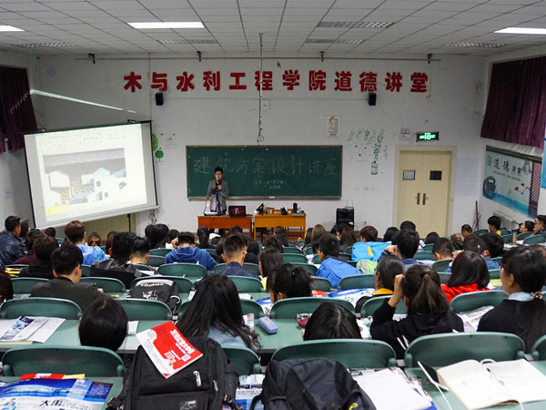 文萃校区工科楼三阶教室成功举办,此次讲座由建筑设计院主创设计师王程林主讲,建筑城规系全体学生参加了此次讲座。