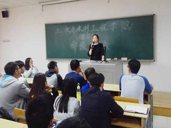 2014级年级大会顺利在文萃校区L楼208教室召开。学院党委副书记柳松洁、14级辅导员王娜、全体14级同学出席了本次大会。