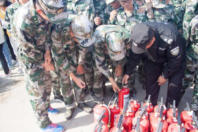 保卫处副处长张启明用简短的语言简明扼要地概括了校园存在的安全问题,并对其提出了相对应的改进方法。同时,也对学生在宿舍的安全方面提出了几点具体要求。大会最后,新生在消防人员的细心指导下,详细了解了消防器材的名称及功能,并进行了灭火体验。