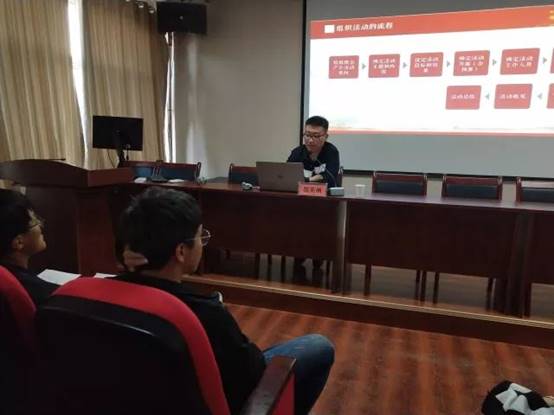 4�27日下午,院学生会原主席郜英洲为本次“青马班”学员授课,带领培训学员思考如何成为优秀学生干部。第九期“青马班”班主任蒋宇欢及青马班全体学员参加了此次讲座,讲座由学生会副主席李鹏昊主持。首先,郜英洲围绕“你为什么要成为学生干部,你认为学生干部真的是干部吗,你认为什么是学生干部”等三个问题进行了讲解,接着为大家播放了有关采访学生干部的视频,郜英洲还分享了自己从面试学生会失败到最终成为一名学生会主席的经历,并以自己的经验详细介绍了组织活动的流程。最后,他希望全体学员能够热爱工作,耐心为同学服务,做勇于创新的优秀学生干部。本次培训有助于学生干部了解并掌握基本工作技巧,使学生干部更有效地开展各项工作,更好地发挥学生干部的模范带头作用,立足服务同学、服务学院,充分发挥自身的能力,为学陀学校发展助力�