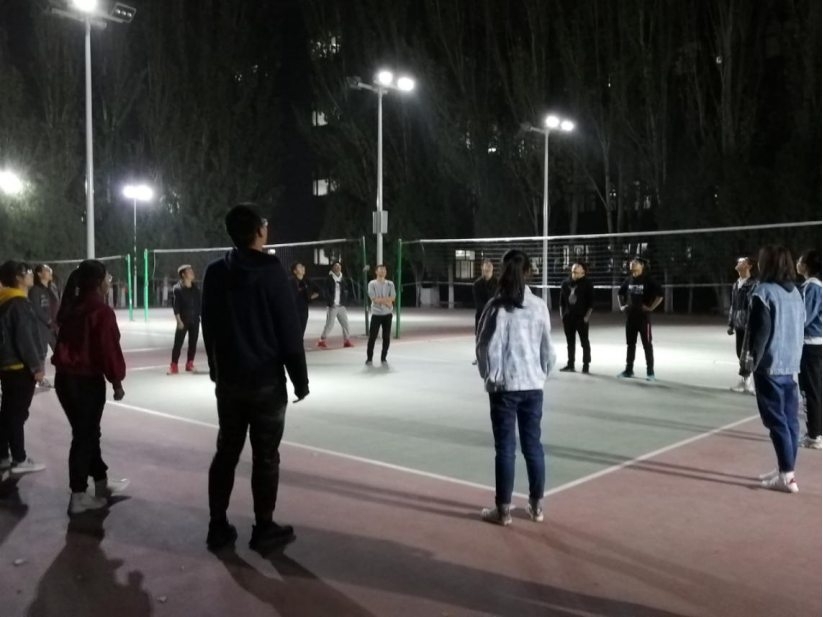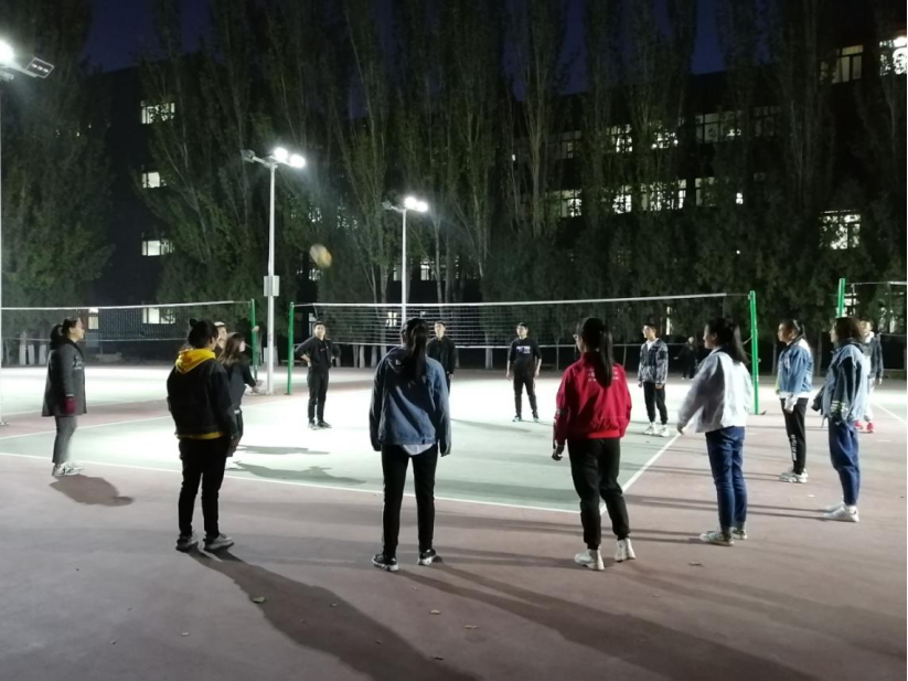 夜幕降临,垫球技术的学习仍在进行,队长们提醒队员一定要保持正确的击球点和击球部位,把这两项内容当做训练的重点,运用行之有效的教学方法,反复练习,巩固提高。