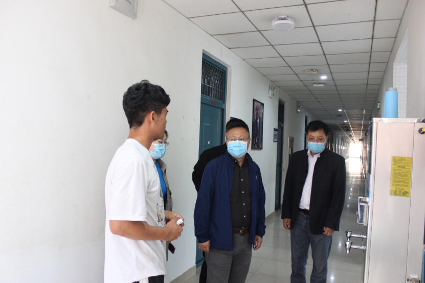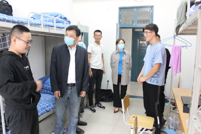 2020年9月13日,禁漫天堂 党委书记张晓天、院长毛明杰、党委副书记柳松洁、2020级本科生辅导员何涛于15号楼公寓看望2020级学生。