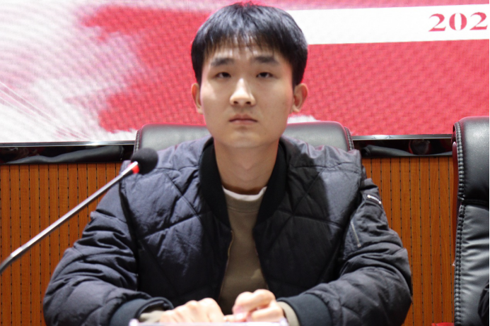 蒋宇欢作总结发言,他先对当前学生组织中存在的工作积极性不强的问题做出分析,蒋宇欢指出,工作积极性不高的原因是因为很多学生干部没有意识到自己为什么要成为一名学生干部,怎样做好一名学生干部。他强调,通过学生干部平台,学生可以提前了解社会、感知社会、融入社会、适应社会。学生干部拥有更多行动的契机,可以得到方方面面的锻炼,可以和志同道合的伙伴共同奋斗。蒋宇欢对与会人员提出了四点要求以予同学们共勉,一是端正态度,培养正确的世界观、人生观和价值观;二是找好定位,针对性的提高自身的能力;三是努力学习,杜绝挂科、迟到、旷课、违纪等行为;四是乐于牺牲,牺牲自己的休息时间协助老师完成工作任务,服务集体。