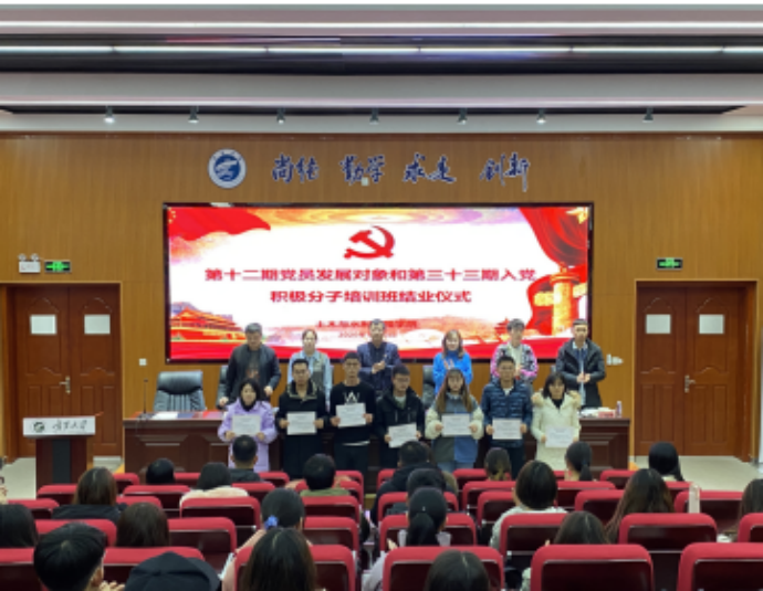 2020�12�2�12:30,土木与水利工程学院第十二期党员发展对象和第三十三期入党积极分子培训班结业仪式在知行楼三阶举行。会议由学生办公室何涛老师主持,学院党委书记张晓天老师、党委副书记柳松洁老师、各学生党支部书记�2020年秋季学期入党积极分子�2020年下半年党员发展对象全体学员参加了本次结业仪式�