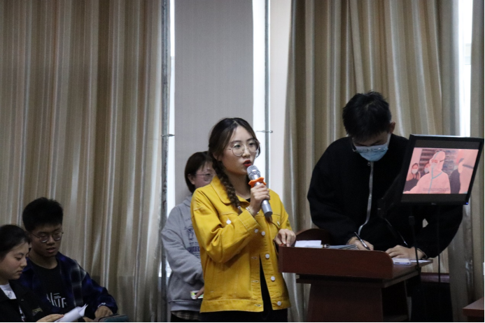 知行楼508教室进行初赛选拔。莅临本次大赛的评委为蒋宇欢老师,万愉快老师。胡佳冰同学,杨博文同学,杨应俊同学。本次“岁月留声、光影重现”活动分为两类分别进行,分别为配音,演绎比赛。配音为个人赛制,演绎为小组形式活动。题材均选自国内经典爱国电影或动画,语录经典,表达爱国情怀,时长5分钟以内。