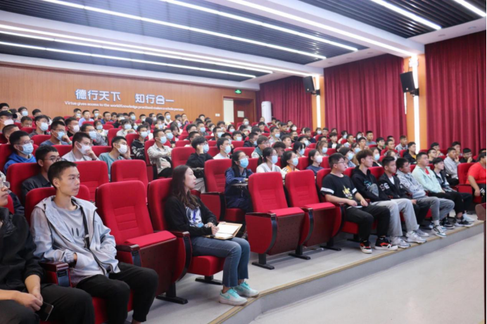 于知行楼三楼阶梯教室举行启航教育讲座,2021级本科生辅导员蒋宇欢主持此次讲座,2021级全体学生分两批参加。