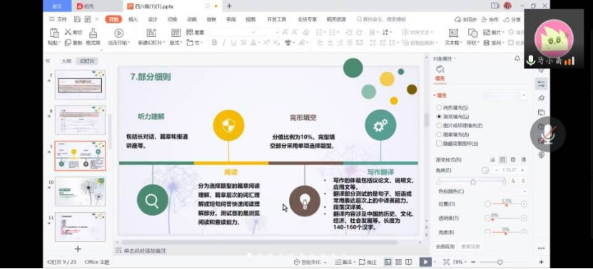 在此次辅导中,负责讲解的同学首先先对四六级的考试流程进行了一个详细的介绍,然后对四六级的各部分占比进行一个简单的介绍,随后,他们对各个部分进行了详细的讲解:在听力部分,主要介绍了听力场景题的基本套路和经典原则,紧接着又讲述了听力中的题型以及做听力的一些技巧。