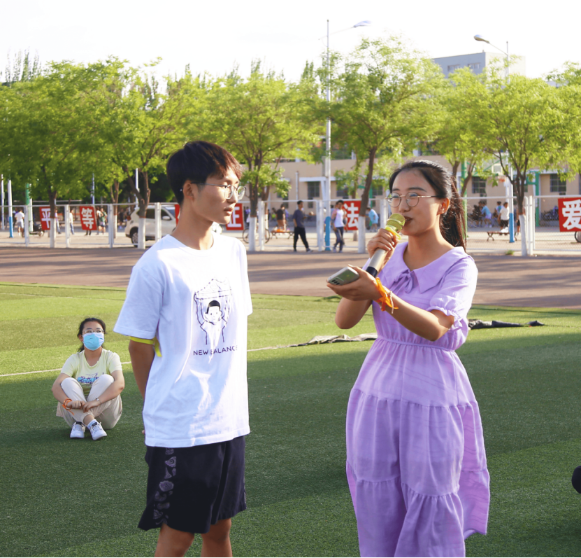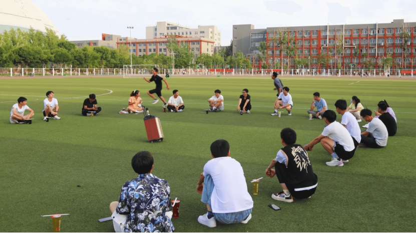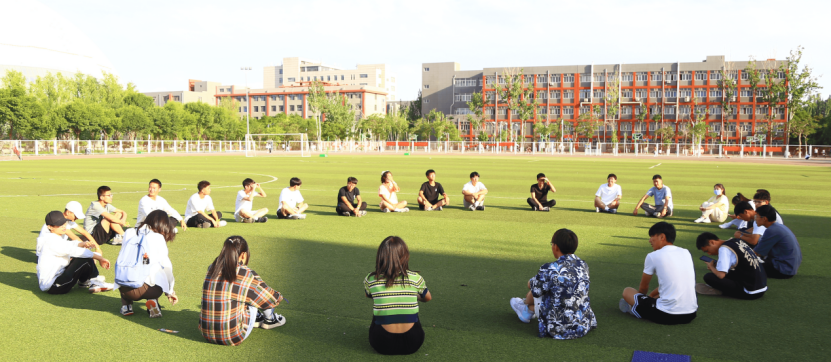 第一个活动是随机应变大比拼,该活动分为两个小游戏,所有学生围成一个大圈坐在操场上,第一个游戏是圈内同学按照顺序说出数字1,2,3…在每位选手不知情的情况下来抢答数字,不能同时有两个选手喊出相同的数字,并对同时起身抢答者进行小组扣分。第二个游戏是丢毽子的比赛,绕圈将毽子丢在随机一个学生的身后并迅速回到自己位置,该学生要在对方回去之前追上对方则可以为自己小组得分,反之就要挑选下一个幸运儿。