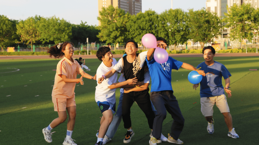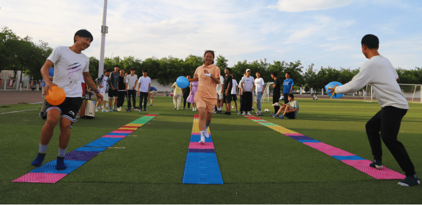 最后一个活动是气球保卫战,每个组依次派出两名成员,每个成员会有两个气球,每组在固定时间内,要保护己方气球并去破坏其他两组的气球,最后剩余气球最多的组赢得本场比赛。该活动大大激发了参赛选手的积极性,考验了选手的灵活走位和队友之间的合作能力。在操场上每个选手都激情四射,挥洒着蓬勃的朝气。在经过一个多小时的激烈比赛后,联谊活动-趣味运动会正式告一段落,通过几场活动后的最终得分,决出每个组的比赛的名次,最后由两个部门一起为大家颁发奖品。