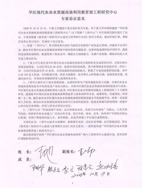 力争�2年左右的时间,立足宁夏,面向西北,瞄准制约农业、农村经济与社会发展的重大关键节水问题,以宁夏大学�211”工程建设学�--节水灌溉与水资源调控学科群以及水利水电工程博士点为纽带,联合校内水利、材料、农业、机械、电气、信息等优势学科和校外节水灌溉方面的材料、农业机械、设备开发等企业,以学科交叉、渗透融合为突破口,以水—土—植物有机结合、工程措施和农业生物措施相统一为特色,以现代农业水资源高效利用工程技术开发和设备产业化为核心,两个国家支撑计划项目为抓手,形成现代农业水资源高效利用新技术、新方法、新材料、新产品、新设备的研究开发基地,新产品的中试和开发基地,高级工程技术人才和新型特色优势农业产业的培育基地,工程技术示范与培训基地,国际合作与交流基地� 建成集研究开发、成果转化、引进消化和培训推广为一体的、具有干旱地区鲜明特色和优势的、能基本代表西北旱区现代农业水资源高效利用领域发展水平的工程研究中心�争取获得省部级科技进步一、二等奖1项,申请国家发明专利和实用新型专�5项,在本领域重要刊物上发表有影响的学术论�15篇以上。在宁夏中部干旱带压砂地持续利用、设施园艺、宁东能源基地、宁夏北干渠、宁南水资源高效利用成果转化和产品开发方面,争取开发精准灌溉方面的产品2-3个,在全区推广�