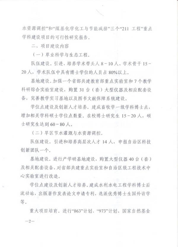 宁夏大学�2008年获教育部批准正式进入�211”工程建设行列,本中心主要依托宁夏大学节水灌溉与水资源调控�211”工程重点建设学科,宁夏节水灌溉与水资源调控工程技术研究中心,水利水电工程宁夏回族自治区重点学科,水利水电工程博士点,水利水电工程、水文学与水资源、农业水土工程、结构工�4个硕士点以及人才,所以本中心与�211”工程重点建设学� 关联程度非常密切�