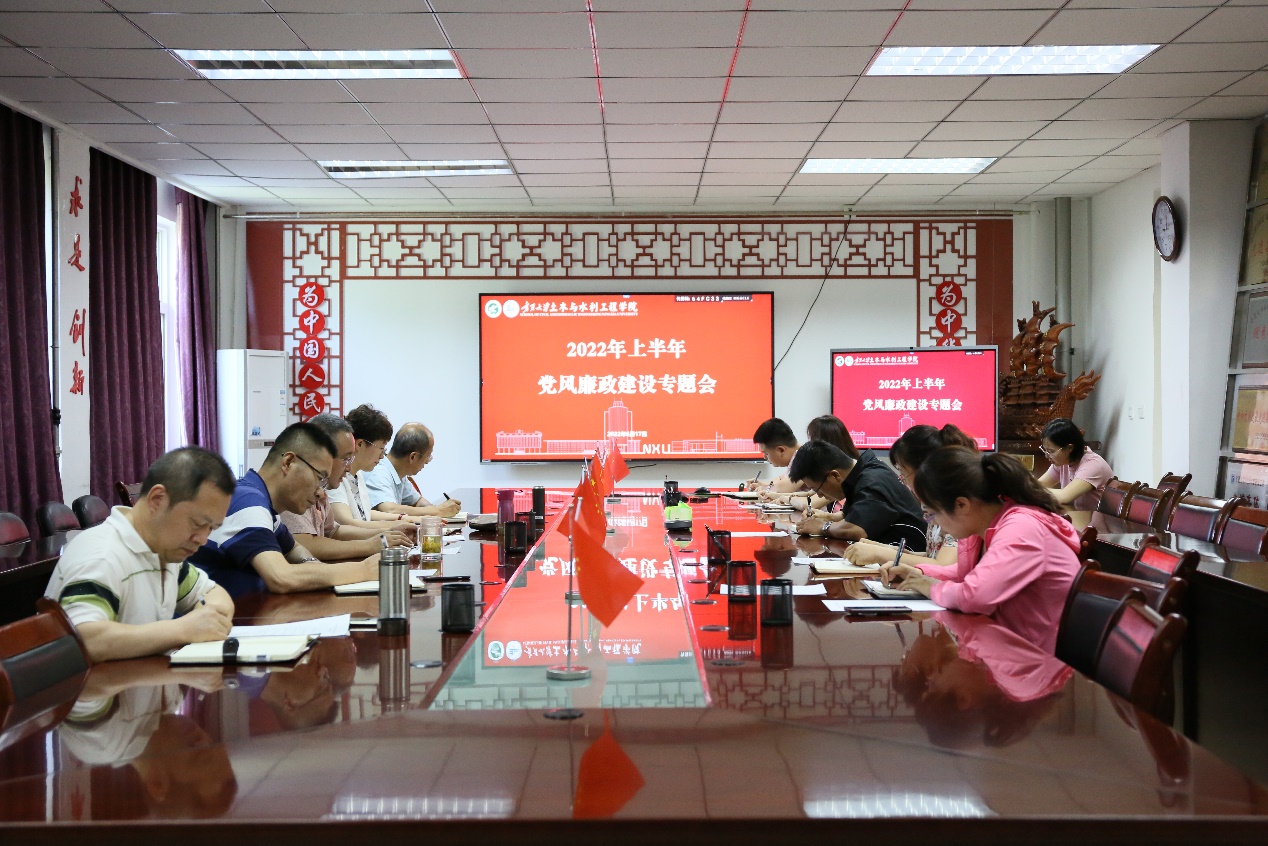 召开2022年上半年党风廉政建设专题会。领导班子成员及“四办一中心”主任参加,学院党委书记陈晓敏主持。
