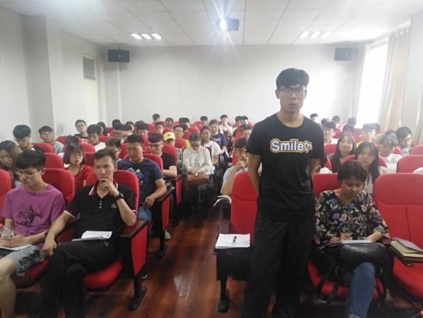 报告的最开始,蒋老师由5月1日新颁布的《中华人民共和国英雄烈士保护法》引出主题,提出第一个问题“什么样的人可以称之为英雄?”同学们各抒己见,发表了自己的看法。讨论结束后,蒋老师将其总结为一句话:英雄是危难时刻挺身而出,是平常日子里鞠躬尽瘁,是普通人拥有一颗伟大的心。之后,蒋老师就大家熟知的几位革命烈士、逆火而行的消防员、抗震救灾先锋蒋敏、放弃高薪从海外回国建设的黄大年、奋战在一线的科技研究人员罗阳和中国女排六个方面的典型,通过视频和身边的例子,为大家诠释了什么是英雄。由此蒋老师提出了第二个问题“为什么我们要崇敬英雄?”他围绕近期污蔑革命英雄、亵渎“逆火而行”的英雄等事件,引导同学们更加深入地思考崇敬英雄的必要性。最后,蒋老师期望各位发展对象学员及党员同志从身边做起,从力所能及的事做起,从思想上提高自己的意识。