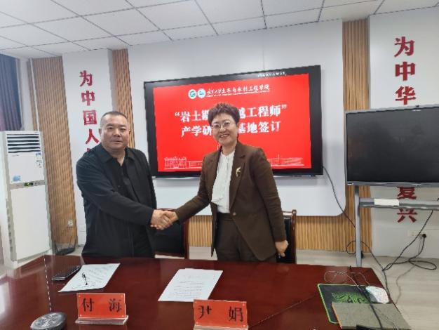 在与会人员的共同见证下,学院党总支书记尹娟教授与宁夏海辉岩土工程有限公司总经理付海代表双方签署了“岩土勘察卓越工程师”产学研联合基地框架协议。协议的签订,标志着校企合作进入了实质性的新阶段,为未来在人才培养、技术研发、成果转化等方面的深度合作奠定了坚实基础。